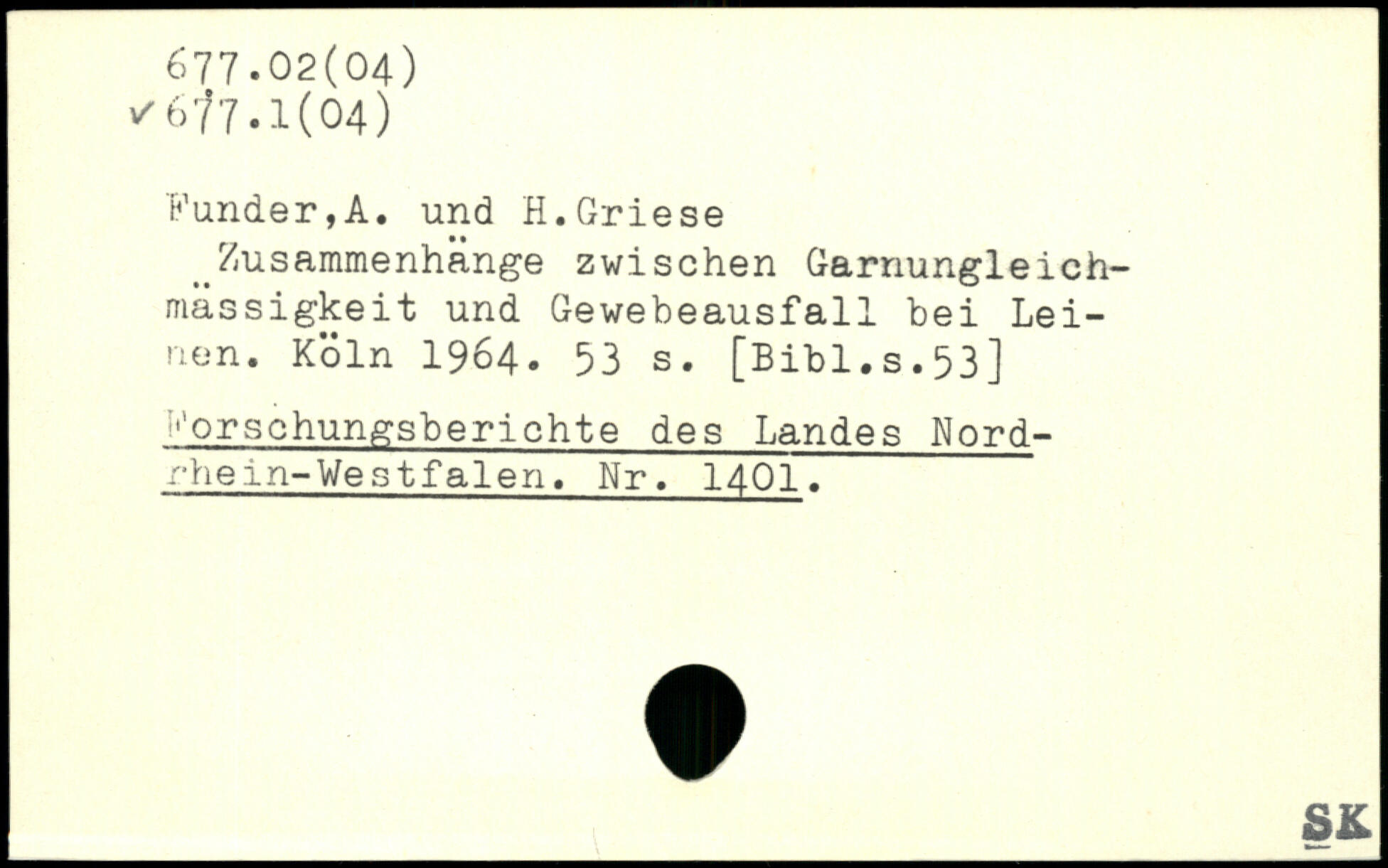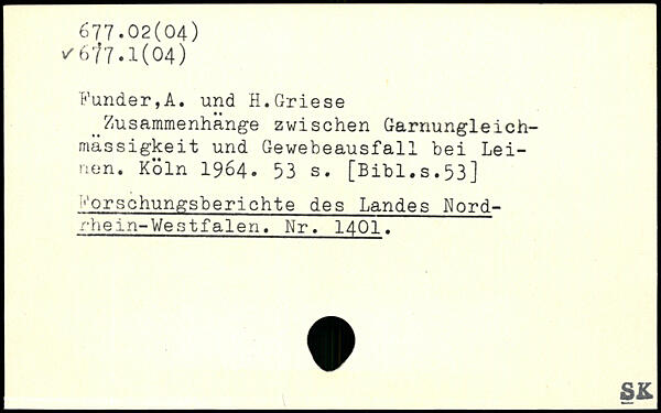Funder,A. und H.Griese ^Zusammenhänge zwischen Garnungleich-mässigkeit und Gewebeausfall bei Leinen.