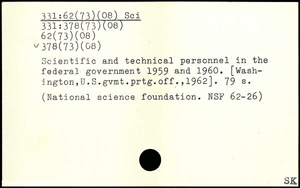 Scientific and technical personnel in the federal government 1959 and 1960. [Washington, U. S.gvmt. prtg. off 1962].