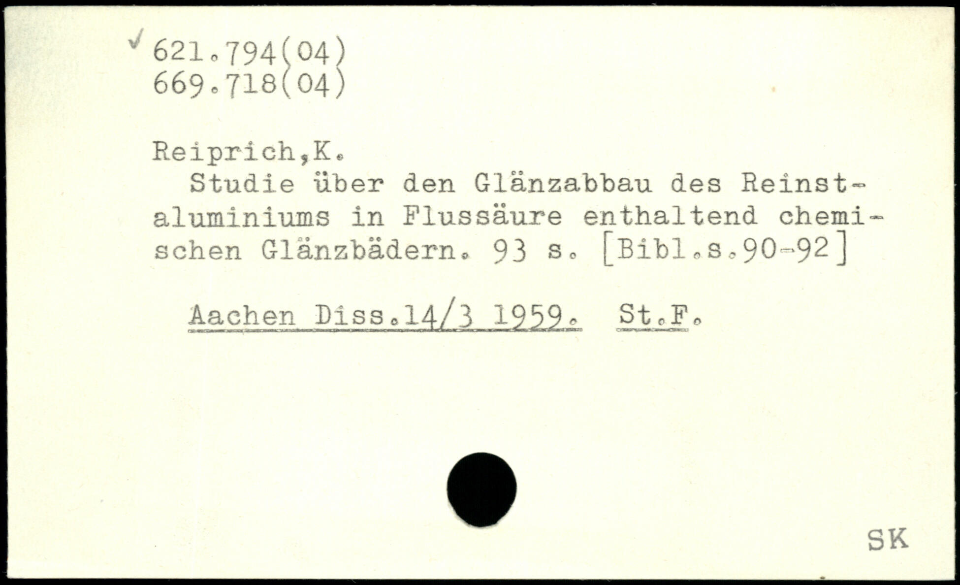 Studie über den Glänzabbau des Reinst-aluminiums in Plussäure enthaltend chemischen Glänzbädern.