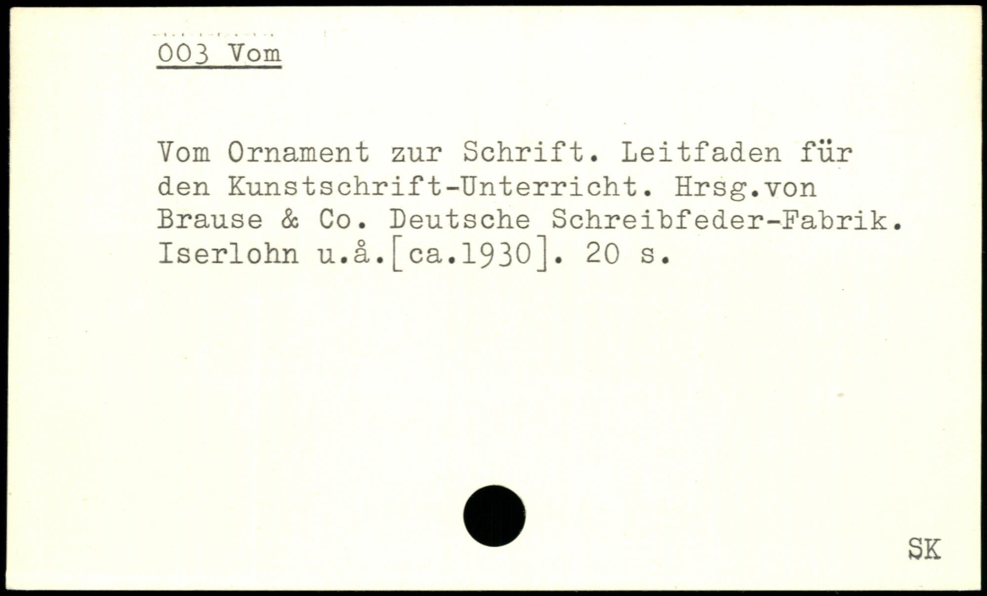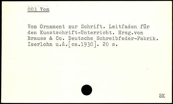 Vom Ornament zur Schrift. Leitfaden für den Kunstschrift-Unterricht. Hrsg.von Brause & Co. Deutsche Schreihfeder-Fabrik. Iserlohn u.ä.[ca.1930].
