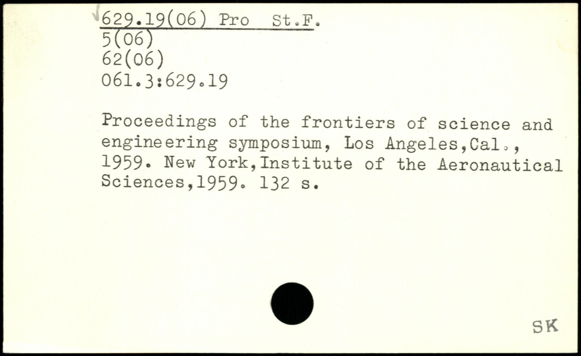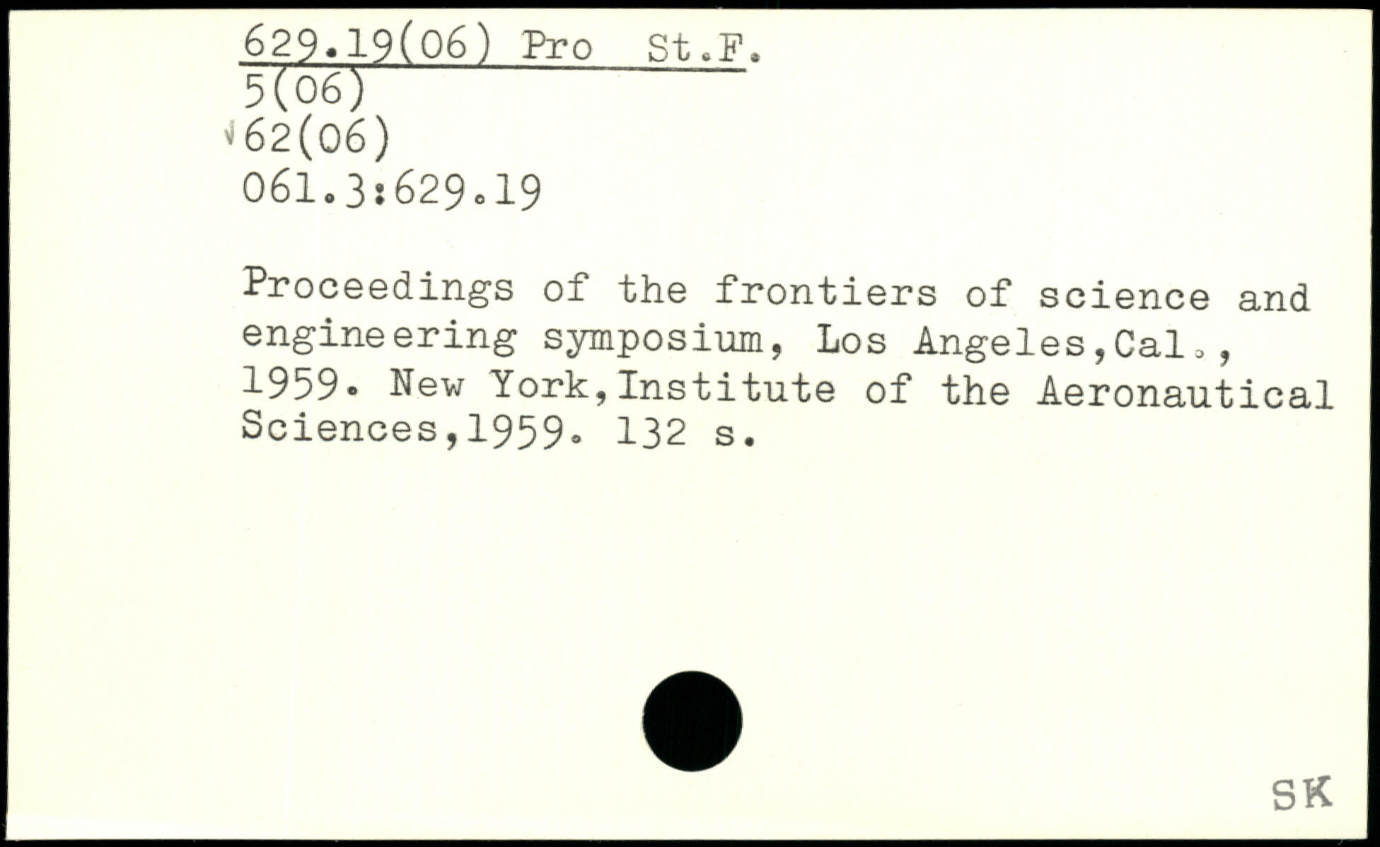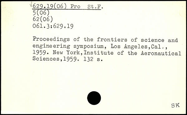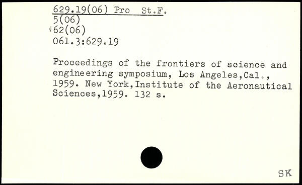 Proceedings of the frontiers of science and engineering symposium, Los Angeles,Cal,, 1959. New York,Institute of the Aeronautical Sciences,1959