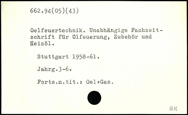 Oelfeuertechnik. Unabhängige Fachzeitschrift für Olfeuerung, Zubehör und Heizöl.