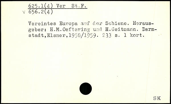 Vereintes Europa auf der Schiene. Herausgeber: H.M.Oeftaring und H.Geitmann. Earm-stadt,Elsner,195ö/1959.