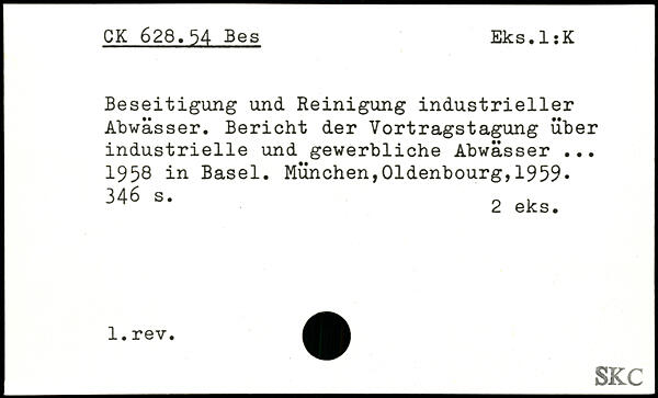 Beseitigung und Reinigung industrieller Abwasser. Bericht der Vortragstagung über industrielle und gewerbliche Abwässer ... 1958 in Basel.