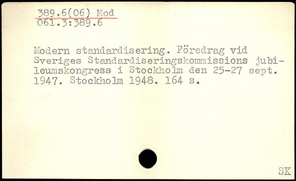 Modern standardisering. Föredrag vid Sveriges Standardiseringskommissions iubi-leumskongress i Stockholm den 25-