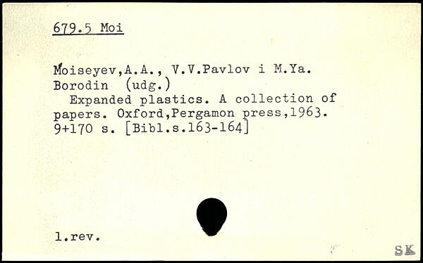 rfoiseyev,A.A., V.V.Pavlov i M.Ya. Borodin (udg.) Expanded plastics. A collection of papers.