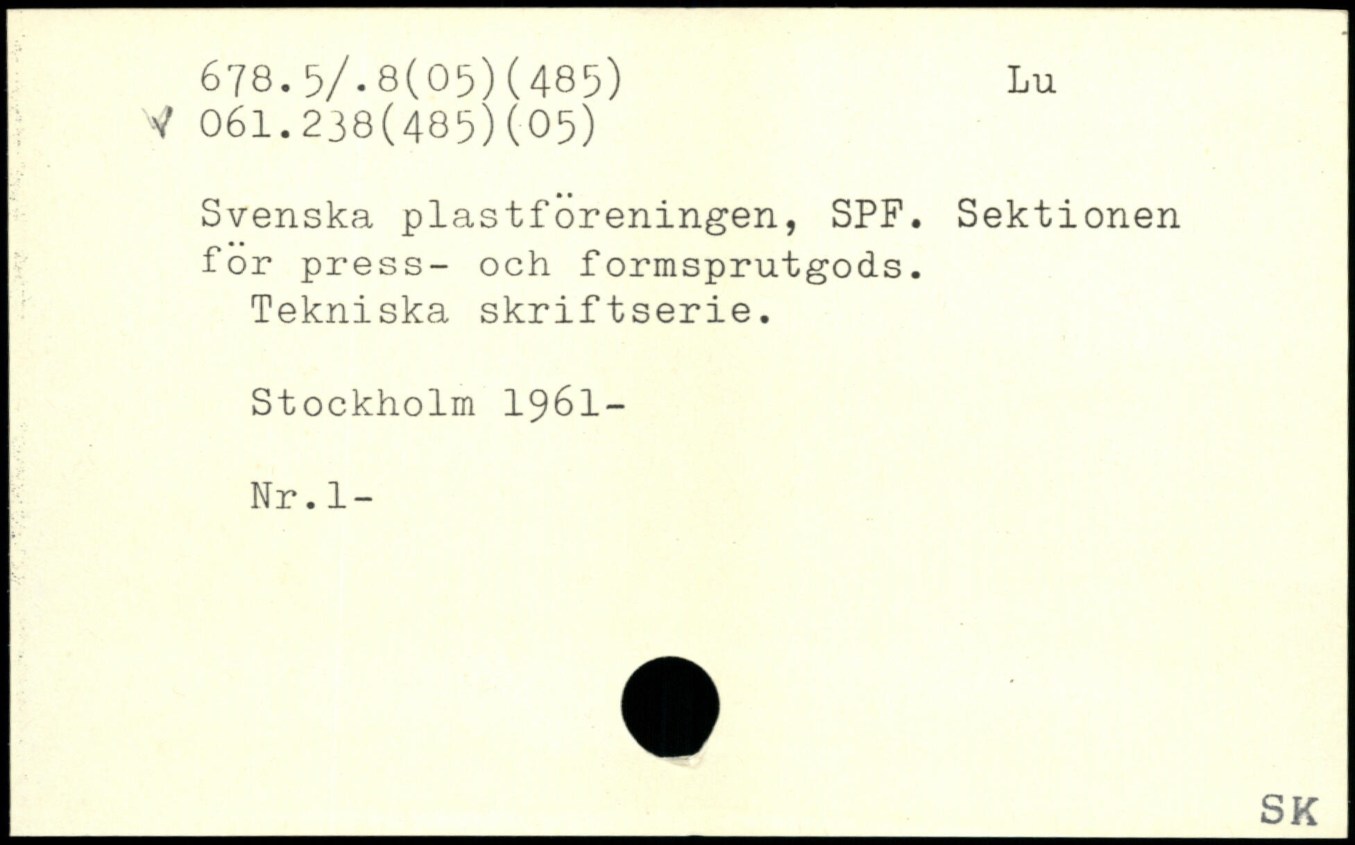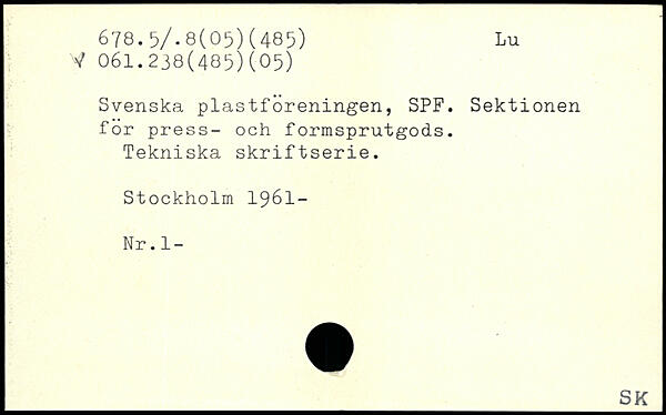 Svenska plastforeningen, SPF. Sektionen for press- och formsprutgods. Tekniska skriftserie.