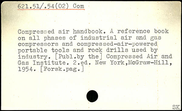 Compressed air handbook. A reference book on all phases of industrial air and gas compressors and compressed-air-powered portable tools and rock drills used by-industry.