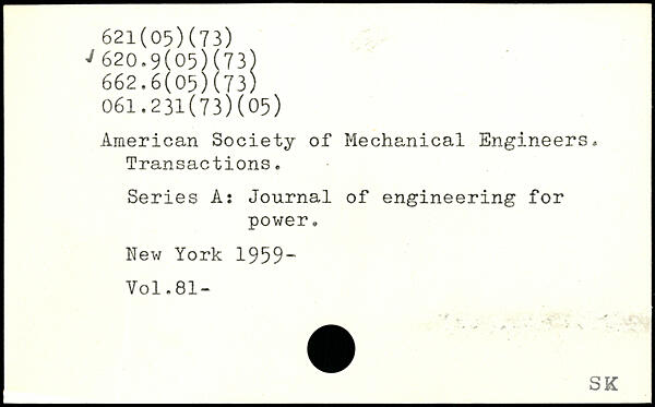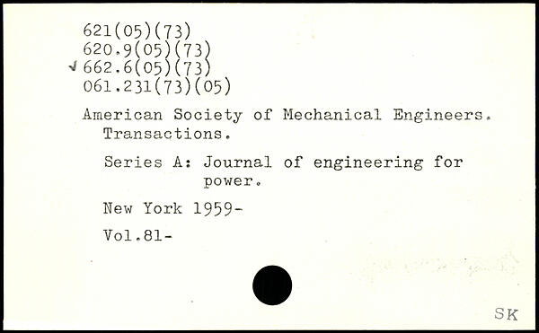 American Society of Mechanical Engineers, Transactions. Series A: Journal of engineering for power.