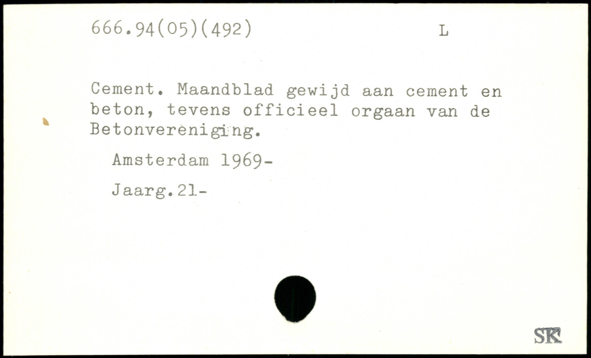 Cement. Maandblad gewijd aan cement en beton, tevens officieel orgaan van de Betonverenigi ng. Amsterdam 1969- Jaarg.21-