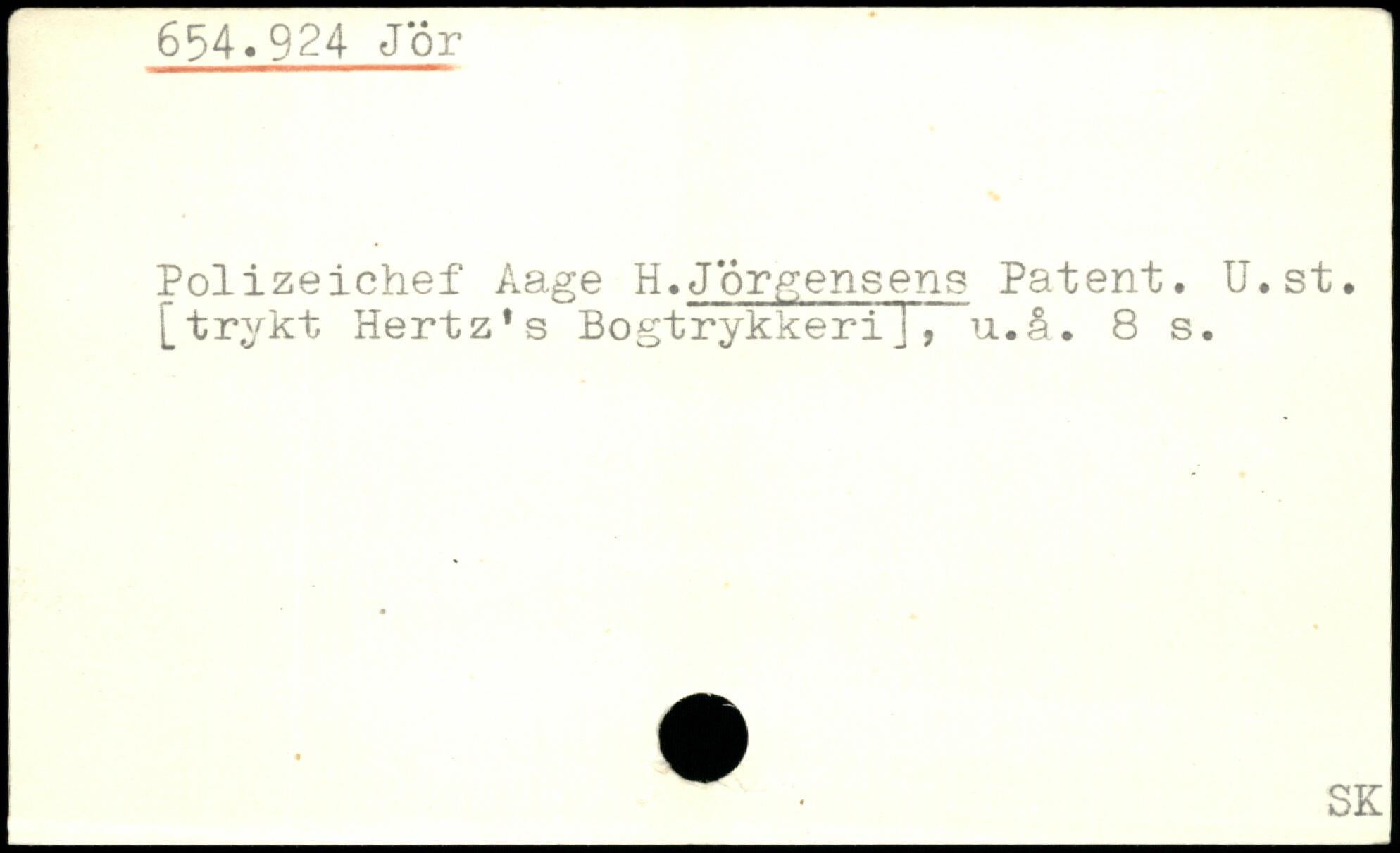Polizeichef Aage H.Jorgensens Patent. U.st. [trykt Hertz's Bogtrykkerij, ^. SK