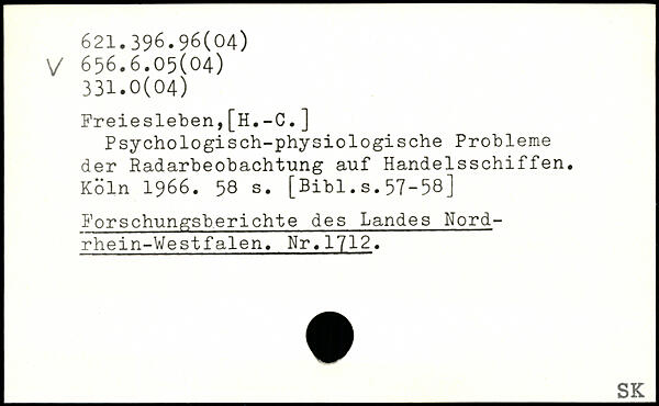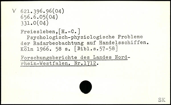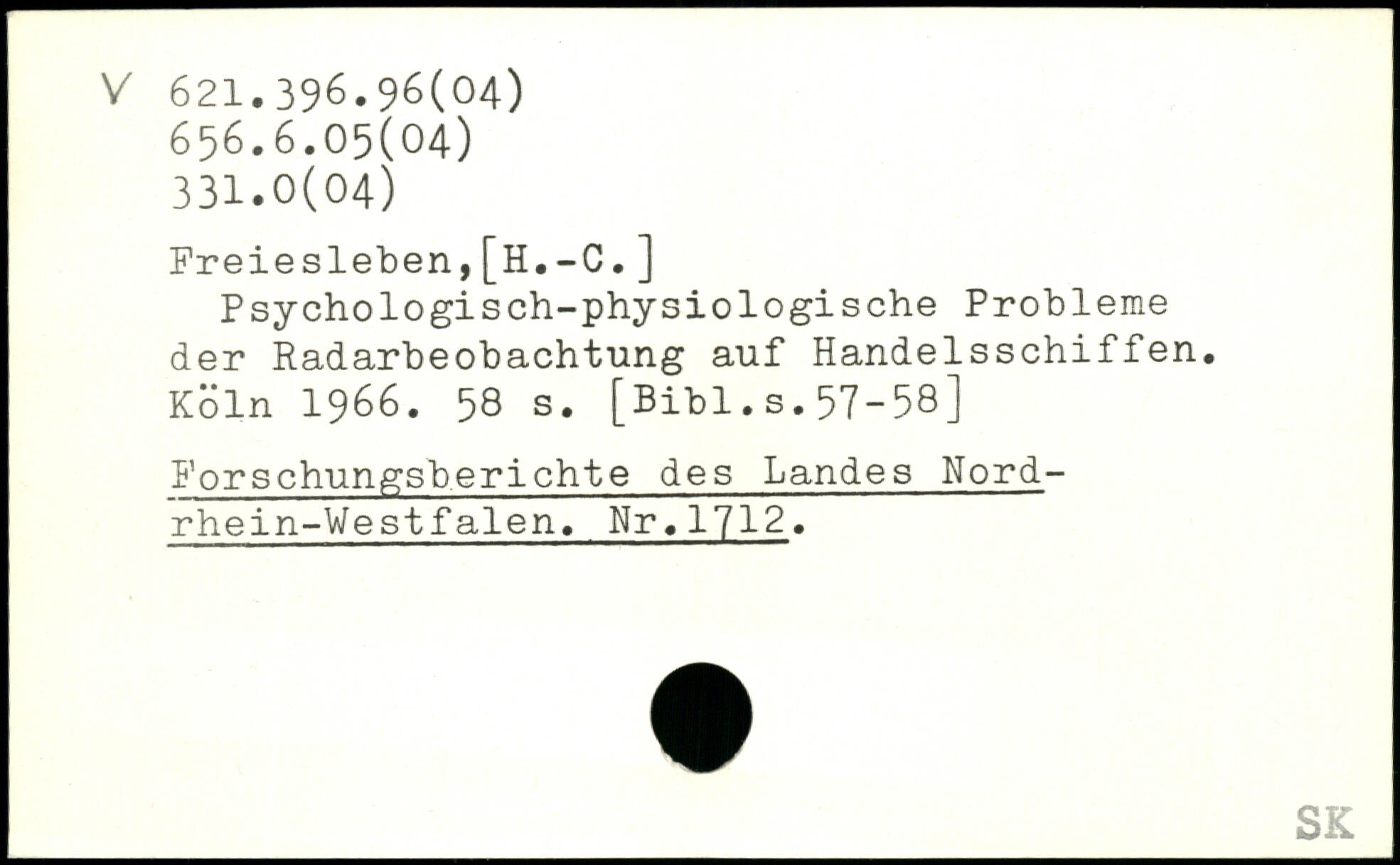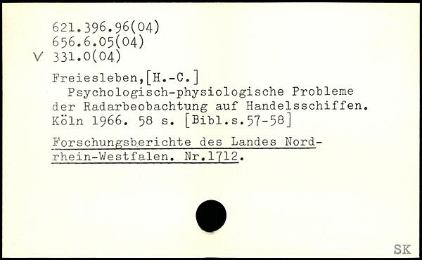 Psychologisch-physiologische Probleme der Radarbeobachtung auf Handelsschiffen.