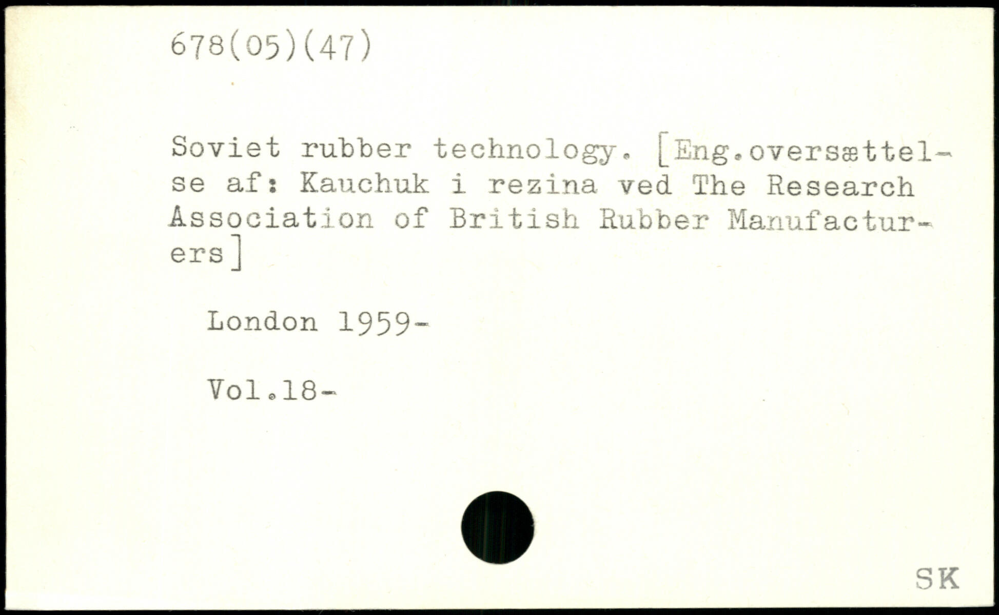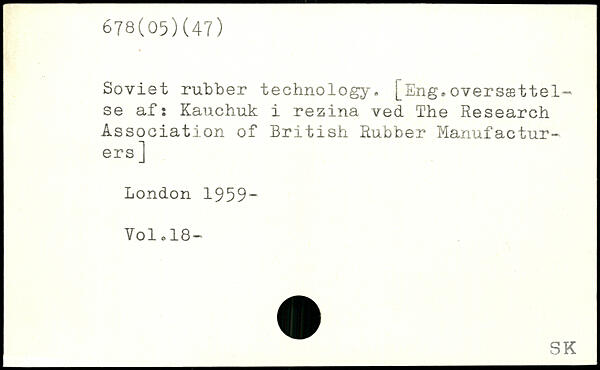 Soviet rubber technology. [Eng.oversættet-se af i Kauchuk i rezina ved The Research Association of British Rubber Manufacturers ]