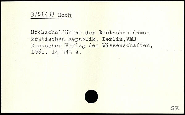 Hochschulführer der Deutschen demokratischen Republik. Berlin,VEB Deutscher Verlag der Wissenschaften, 1961.