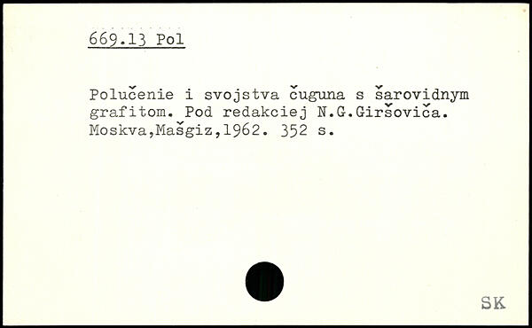 Polucenie i svojstva cuguna s sarovidnym grafitom. Pod redakciej N.G.Girsovica.