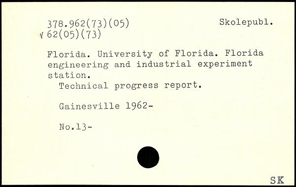 Florida. University of Florida. Florida engineering and industrial experiment station. Technical progress report. Gainesville 1962-No.13-