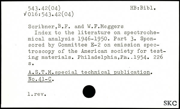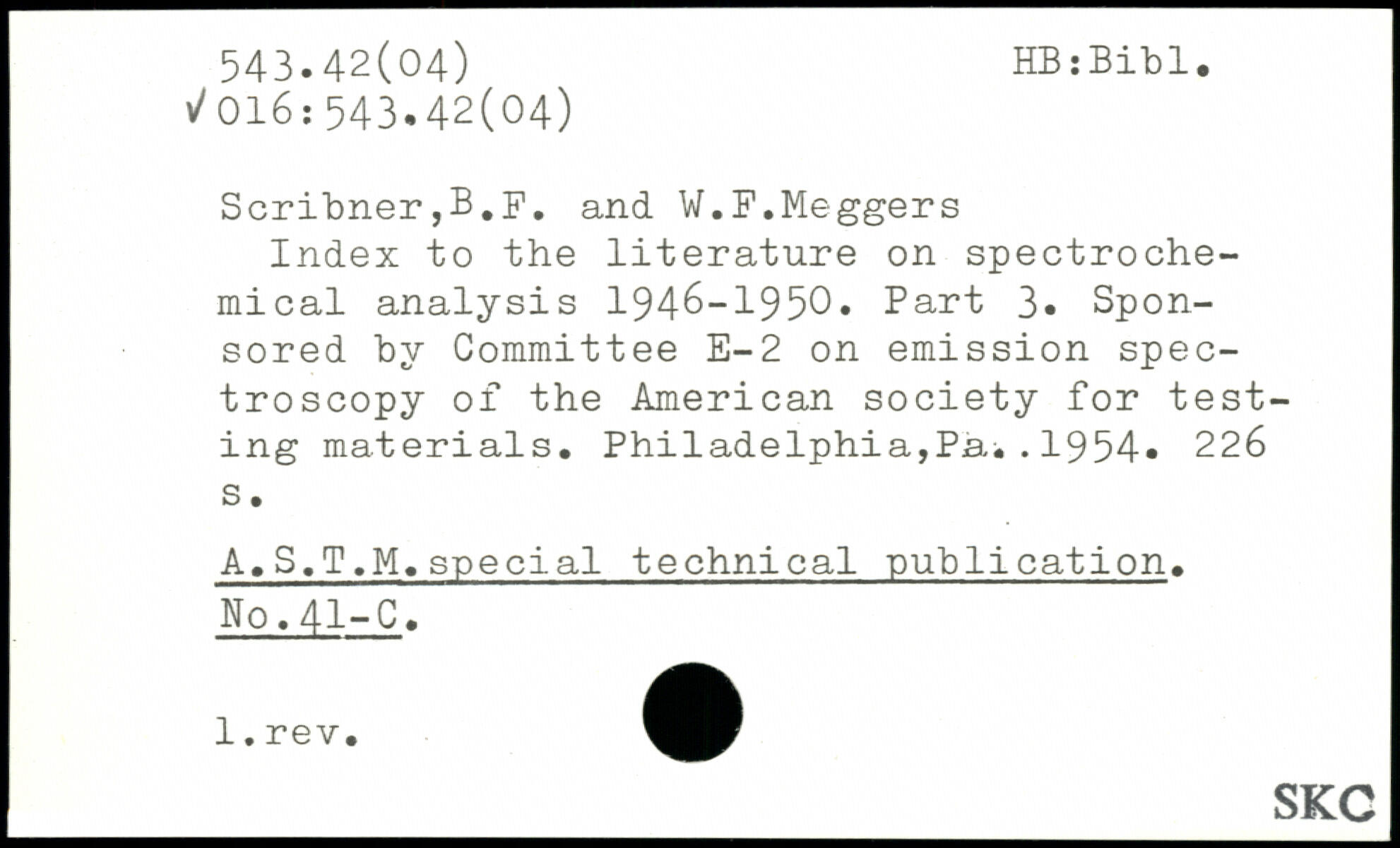 Index to the literature on spectroche-mical analysis 1946-1950. Fart 3, Sponsored by Committee E-2 on emission spectroscopy of the American society for testing materials. Philadelphia,Pau .1954