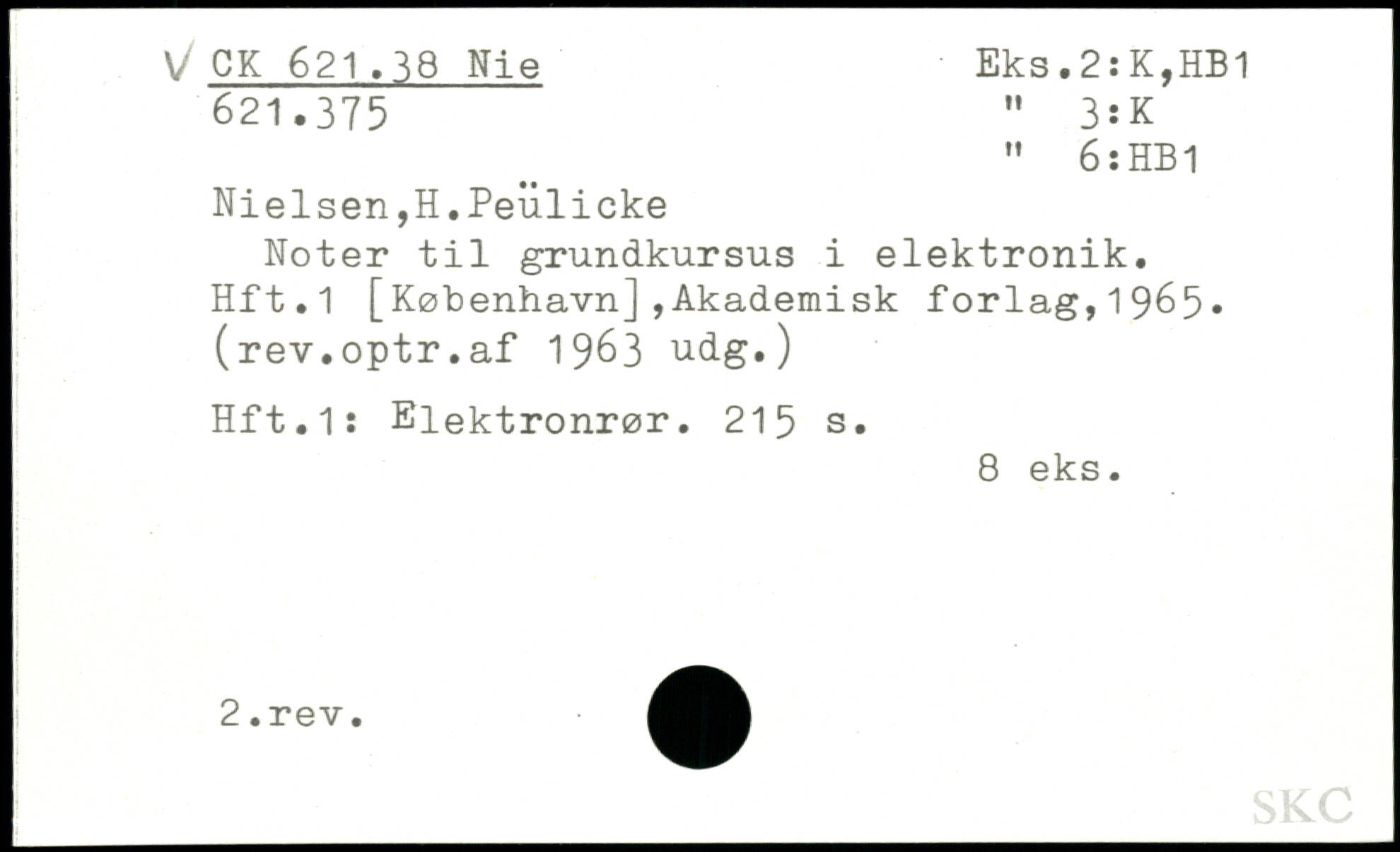 Nielsen,H.Peulicke Noter til grundkursus i elektronik. Hft.1 [København],Akademisk forlag,1965, (rev.optr.af