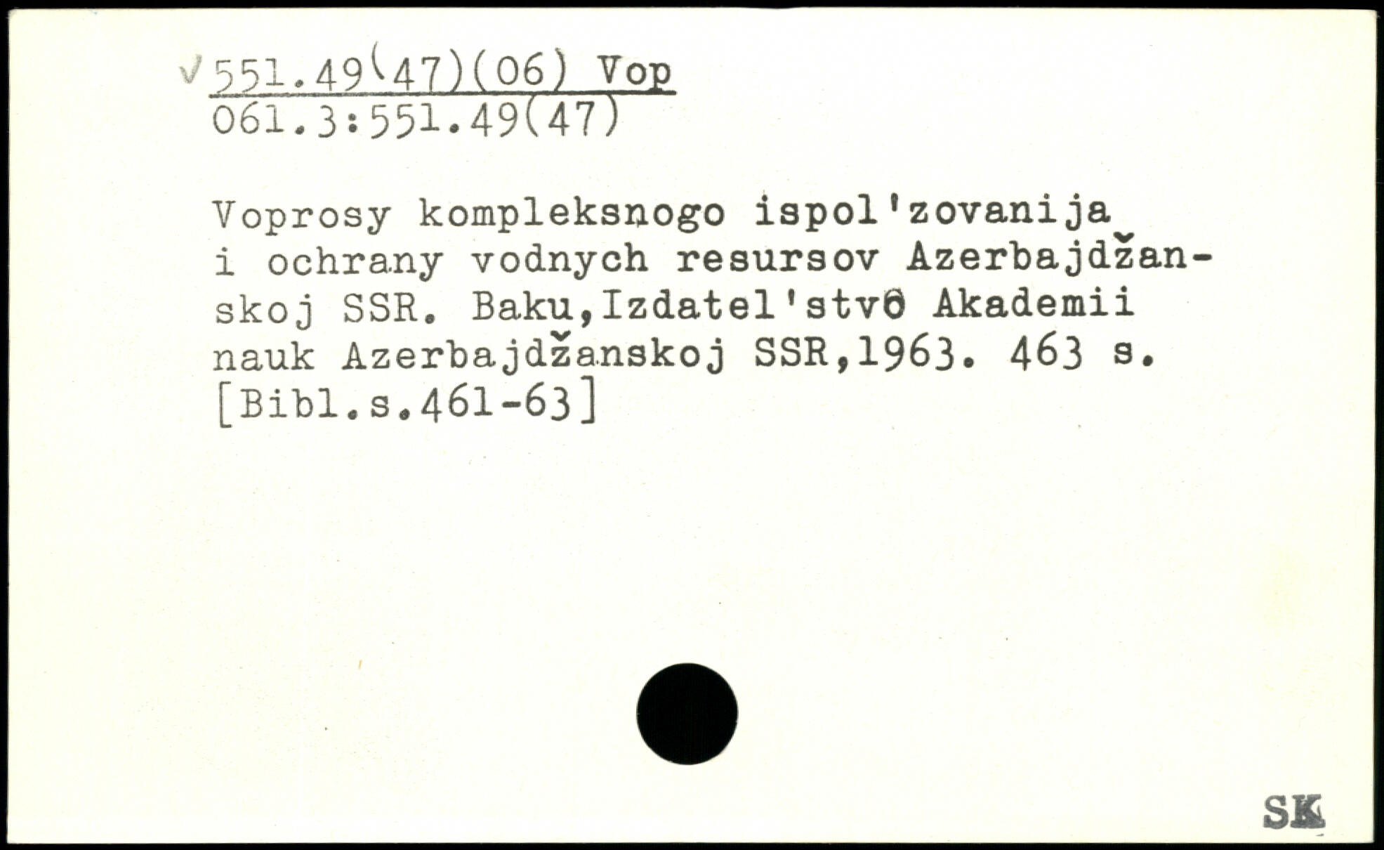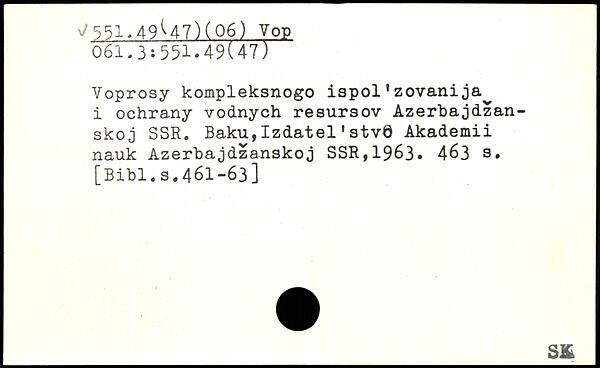 Voprosy kompleksnogo ispol'zovanija i ochrany vodnych resursov Azerbajdzan-skoj SSR. Baku,Izdatel'stv6 Akademii nauk Azerbajdza.nsko j SSR,1963.