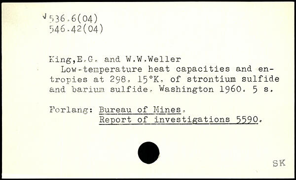 Low-temperature heat capacities and entropies at 2Q8, 15.K, of strontium sulfide and barium sulfide<>