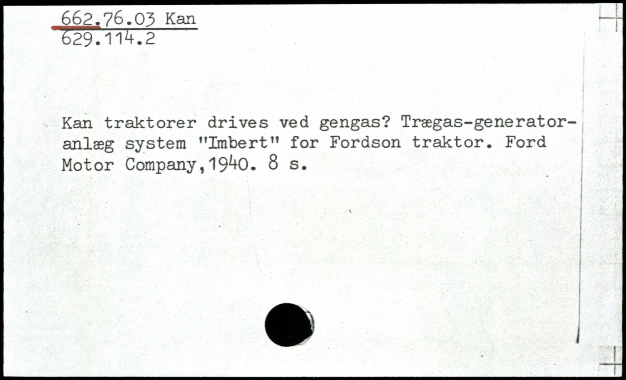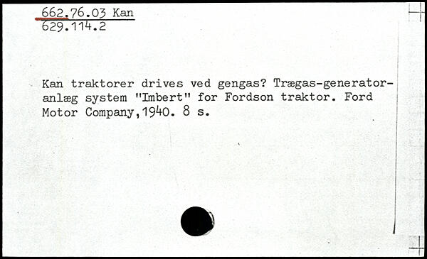 Kan traktorer drives ved gengas? Trægas-generator-anlæg system "Imbert" for Fordson traktor. Ford Motor Company,19^0.