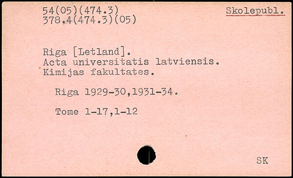 Riga [Letland]. Acta universitatis latviensis. Kimijas fakultates. Riga 1929-30,1931-34. Tome 1-17,1-12
