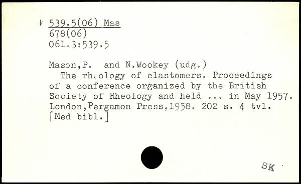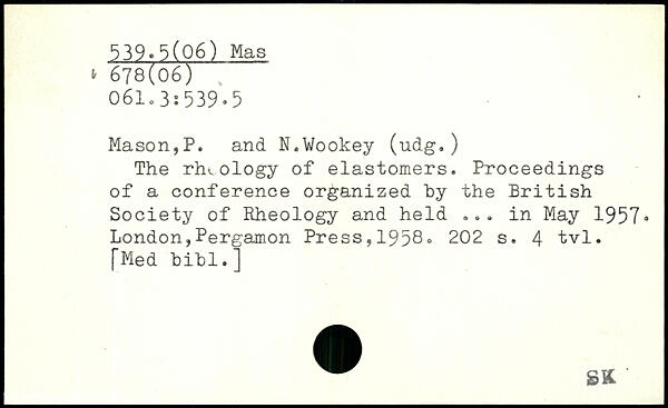 The rheology of elastomers. Proceedings of a conference organized "by the British ; Society of Rheology and held ... in May 1957.