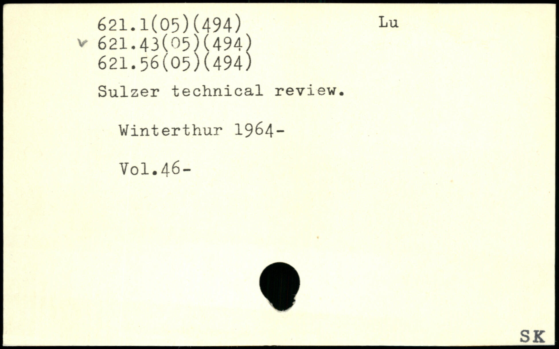 Sulzer technical review. Winterthur 1964-