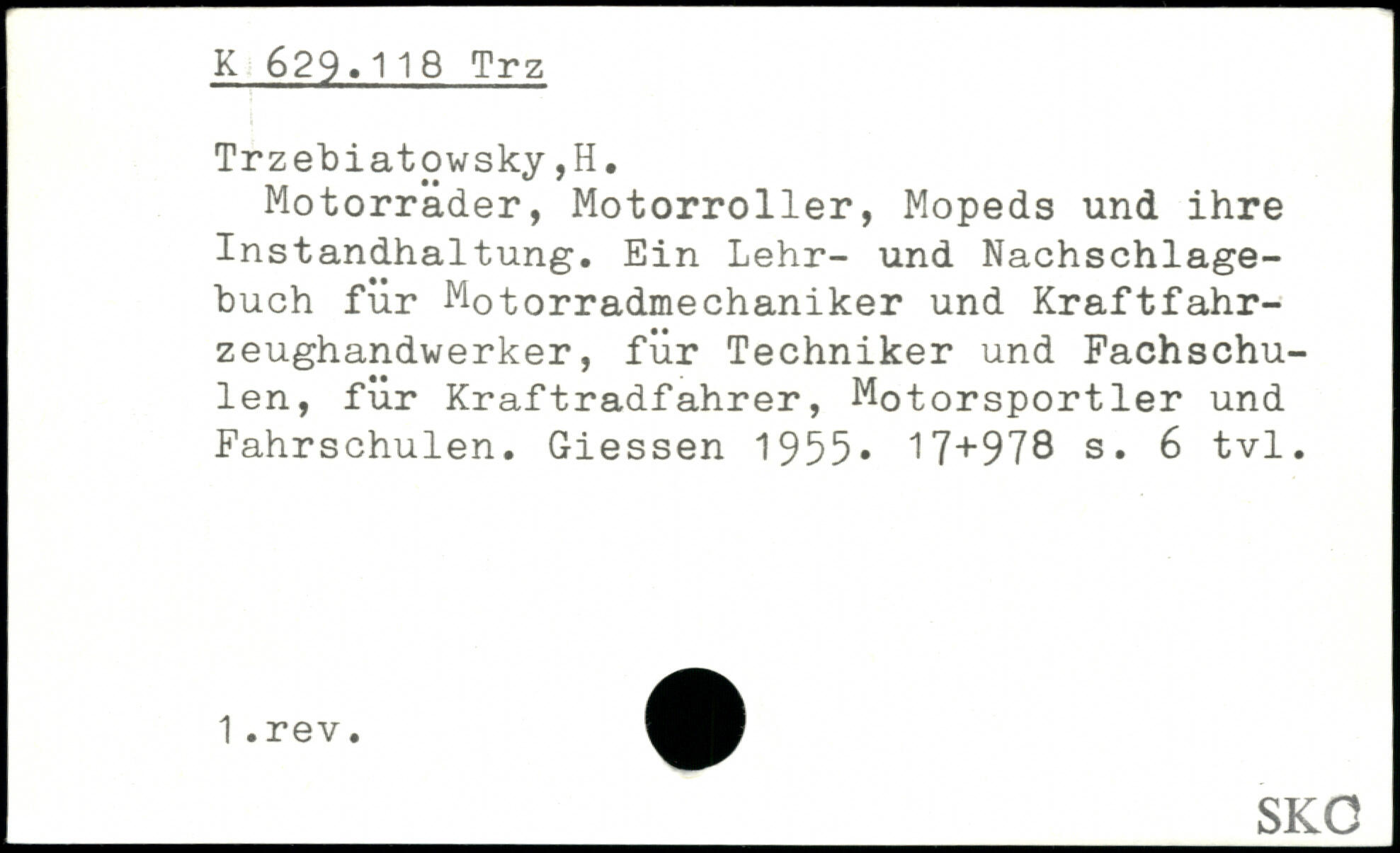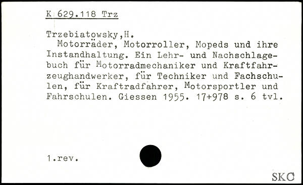 Motorräder, Motorroller, Mopeds und ihre Instandhaltung. Ein Lehr- und Nachschlage-buch für Motorradmechaniker und Kraftfahrzeughandwerker, für Techniker und Fachschulen, für Kraftradfahrer, Motorsportler und Fahrschulen. Giessen 1955