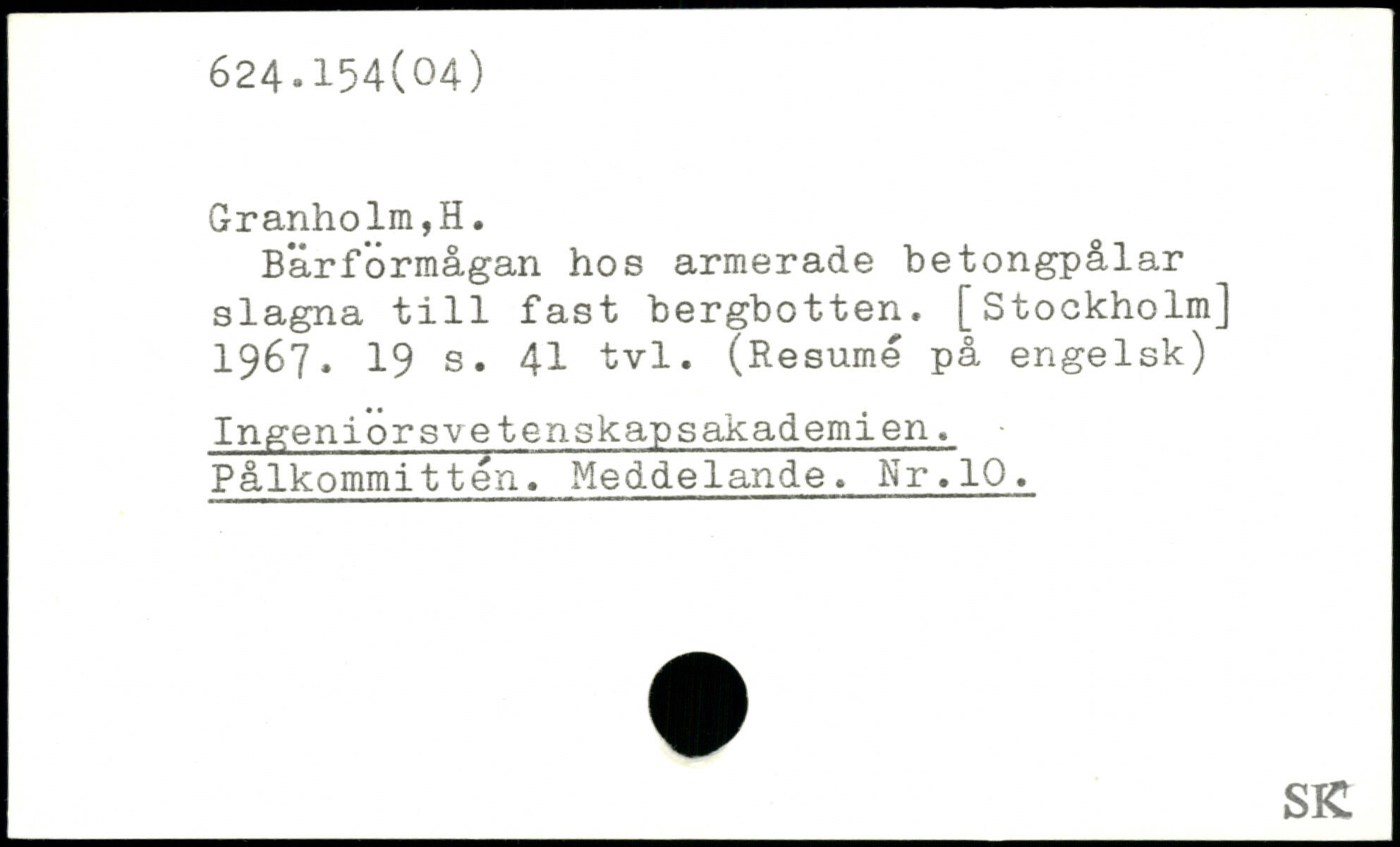 Bärförmågan hos armerade betongpålar slagna till fast bergbotten.