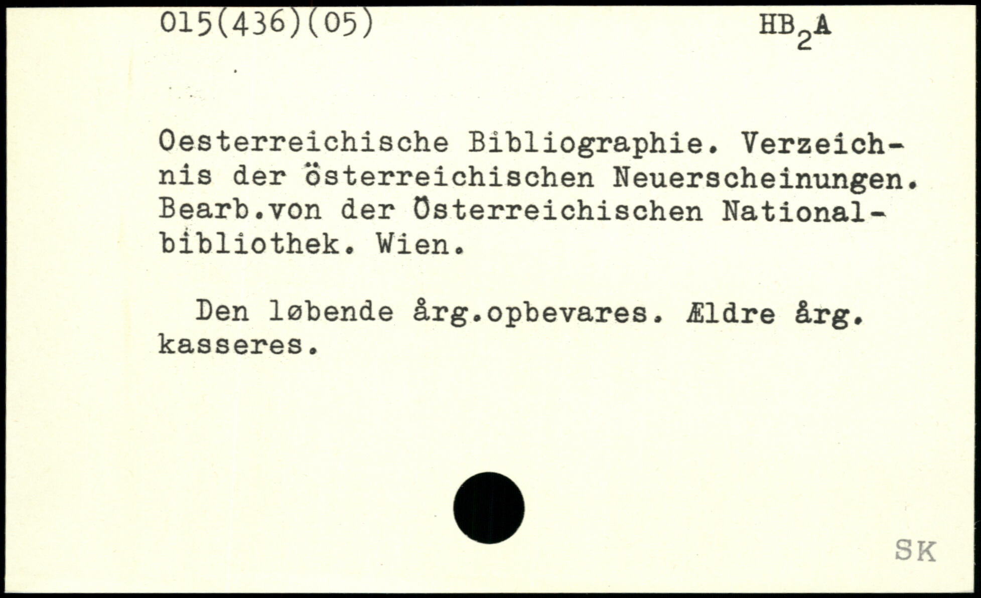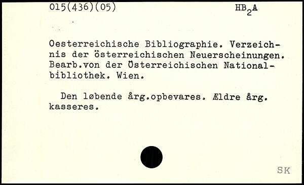 Oesterreichische Bibliographie. Verzeichnis der österreichischen Neuerscheinungen. Bearb.von der österreichischen Nationalbibliothek. Wien. Den lobende ârg.opbevares. Ældre ârg. kasseres.