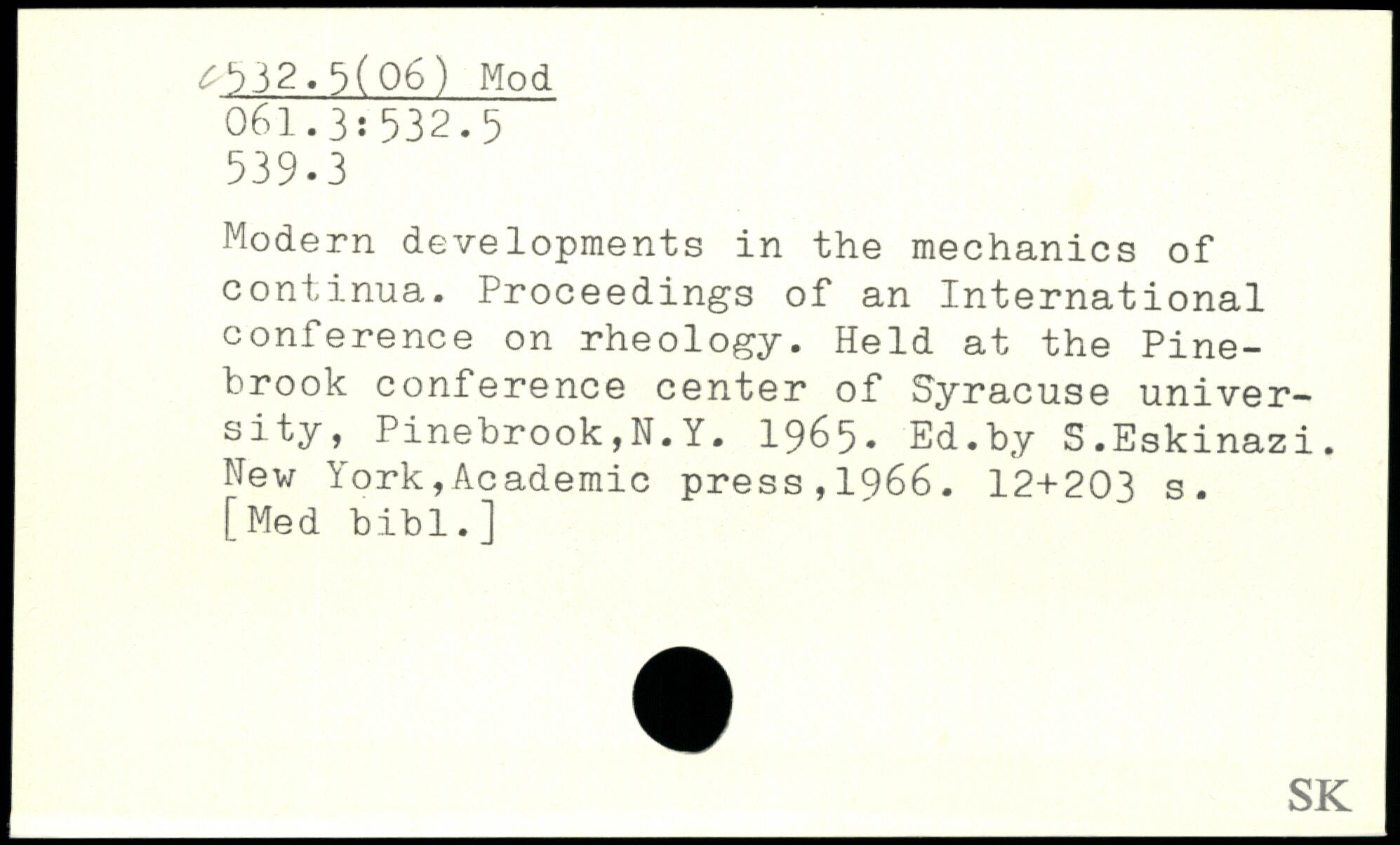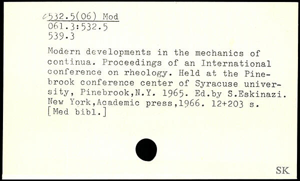 Modern developments in the mechanics of continua. Proceedings of an International conference on rheology. Held at the Pine-brook conference center of Syracuse university, Pinebrook,N.Y. 1965, Ed.by S.Eskinazi.
