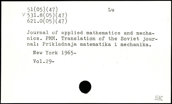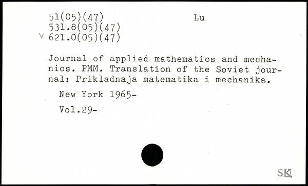 Journal of applied mathematics and mechanics. PMM. Translation of the Soviet journal: Prikladnaja matematika i mechanika.