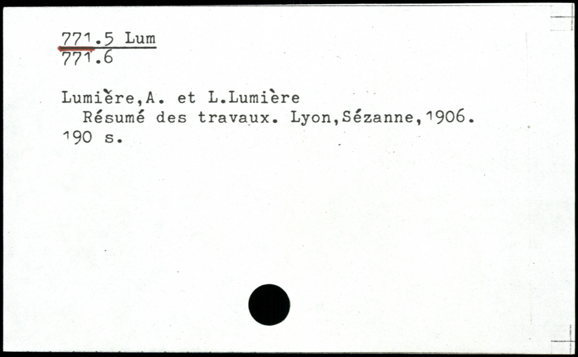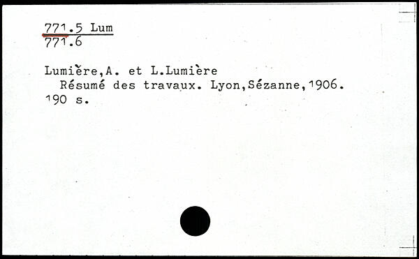 Lumière,A. et L.Lumière Résumé des travaux.