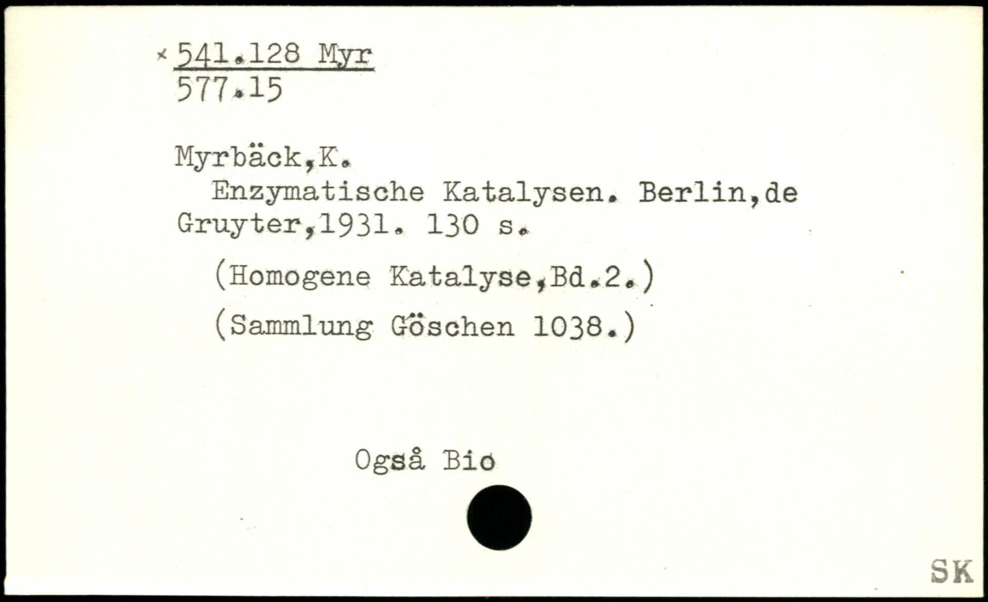Enzymatische Katalysen. Berlin,de Gruyter,1931.