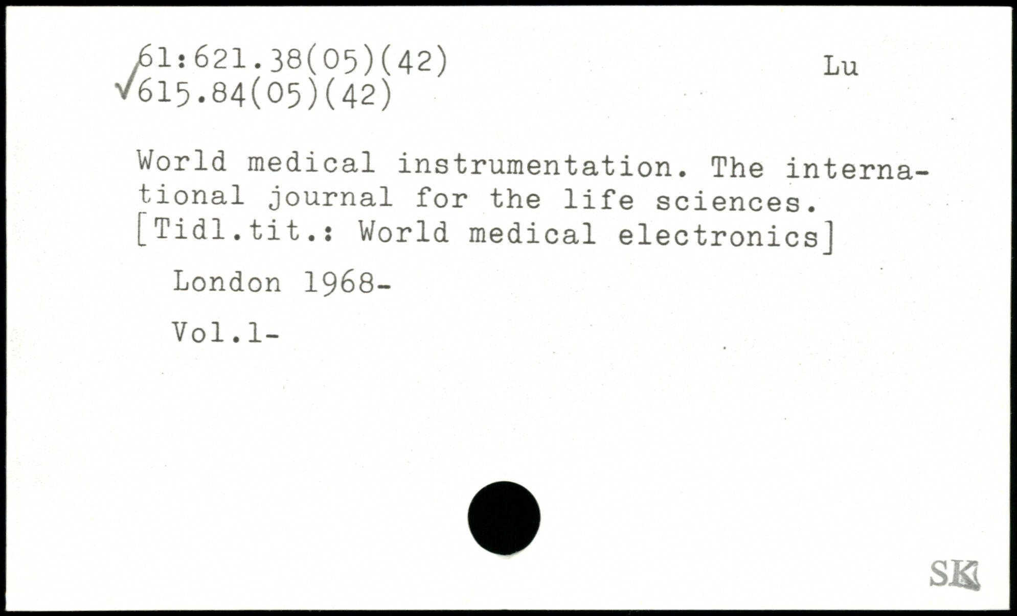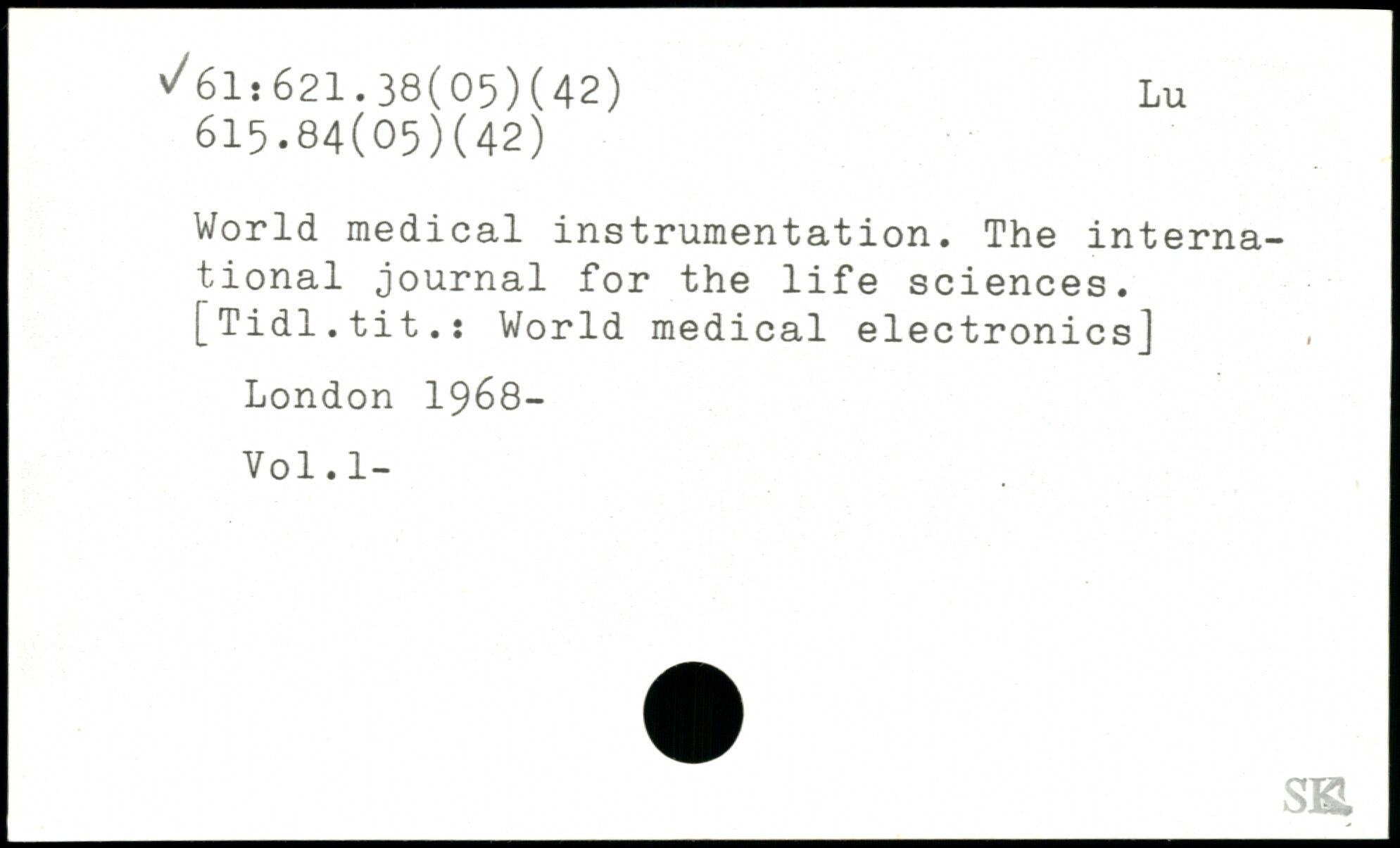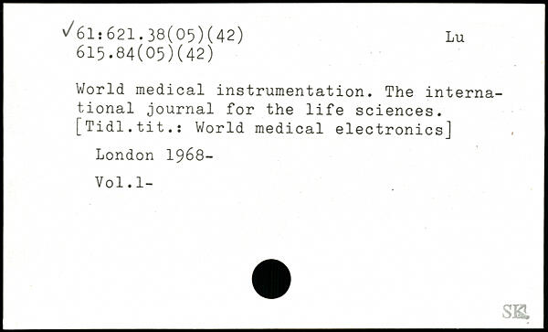 World medical instrumentation. The international journal for the life sciences. [Tidl.tit.: World medical electronics]