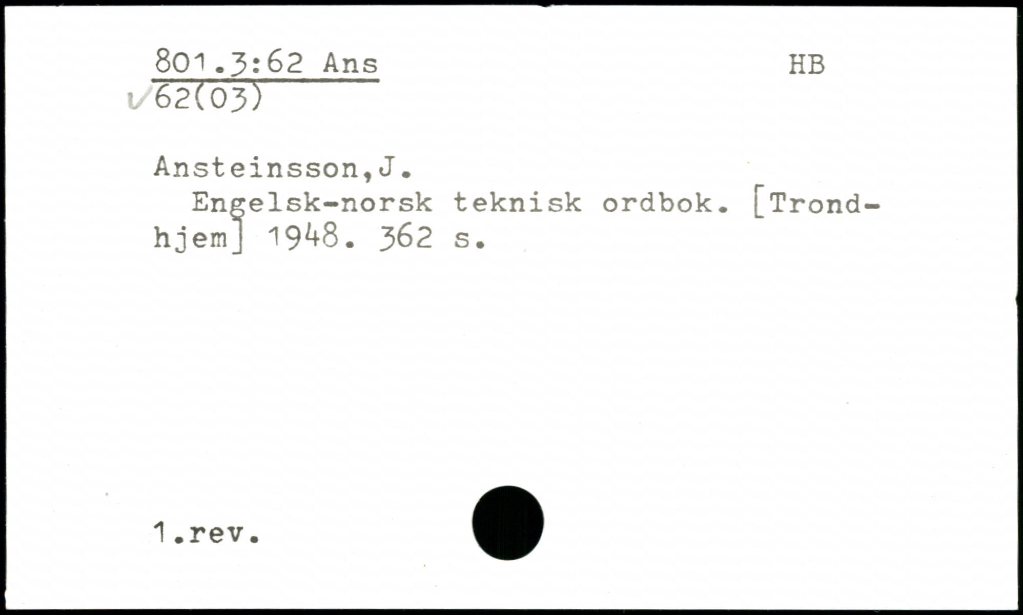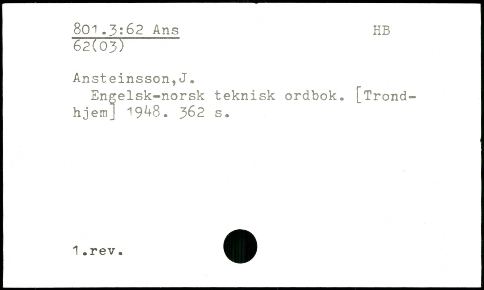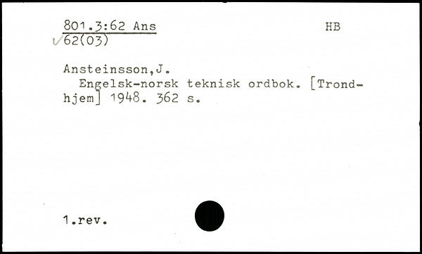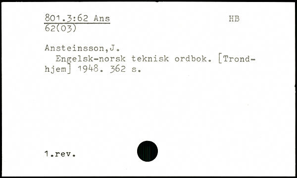 Engelsk-norsk teknisk ordbok. [Trond-hjem] 19^8.