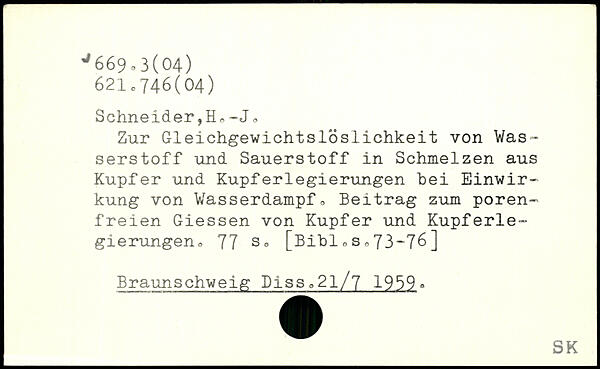 Schneider,Hr-Jo Zur Gleichgewichtslöslichkeit von Wasserstoff und Sauerstoff in Schmelzen aus Kupfer und Kupferlegierungen hei Einwirkung von Wasserdampf, Beitrag zum porenfreien Giessen von Kupfer und Kupferlegierungen,