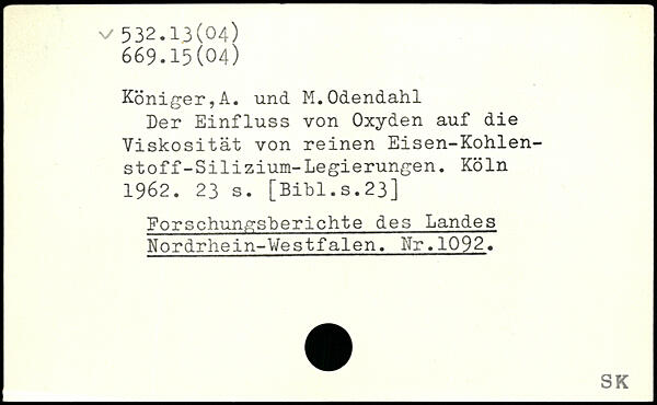 Der Einfluss von Oxyden auf die Viskosität von reinen Eisen-Kohlenstoff-Silizium- Legierungen.