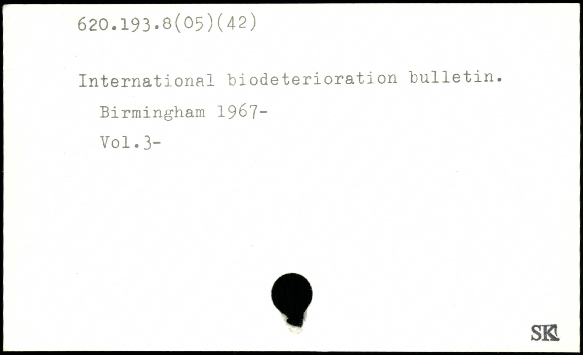 International biodeterioration bulletin. Birmingham 1967-