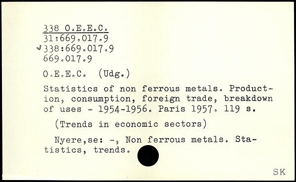 Statistics of non ferrous metals, Production, consumption, foreign trade, breakdown of uses - 1954-1956