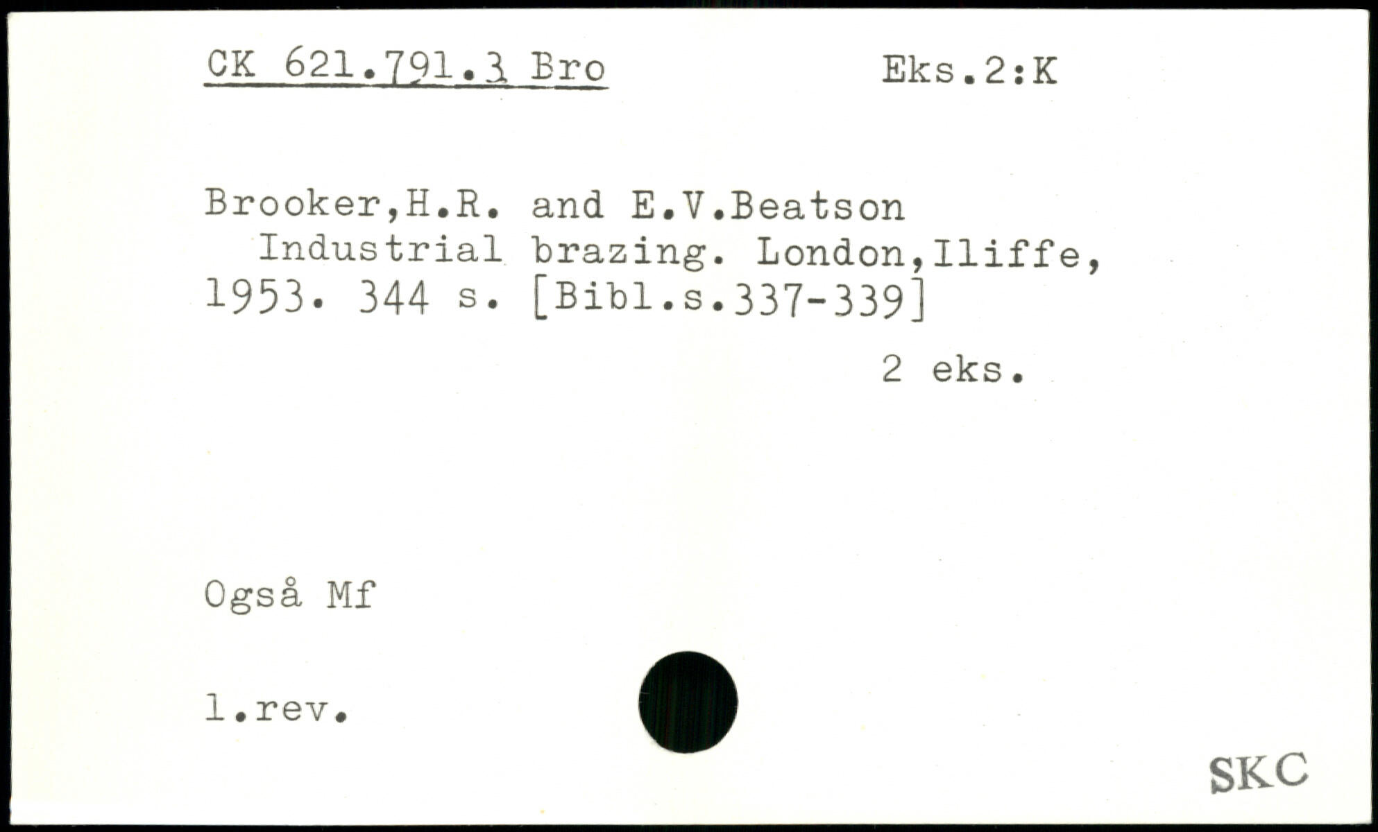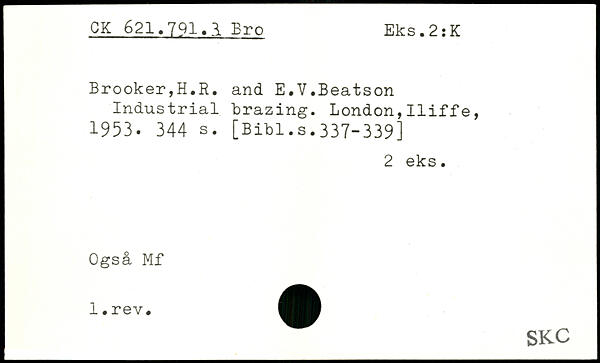 Brooker,H.R, and E.V.Beatson Industrial brazing.