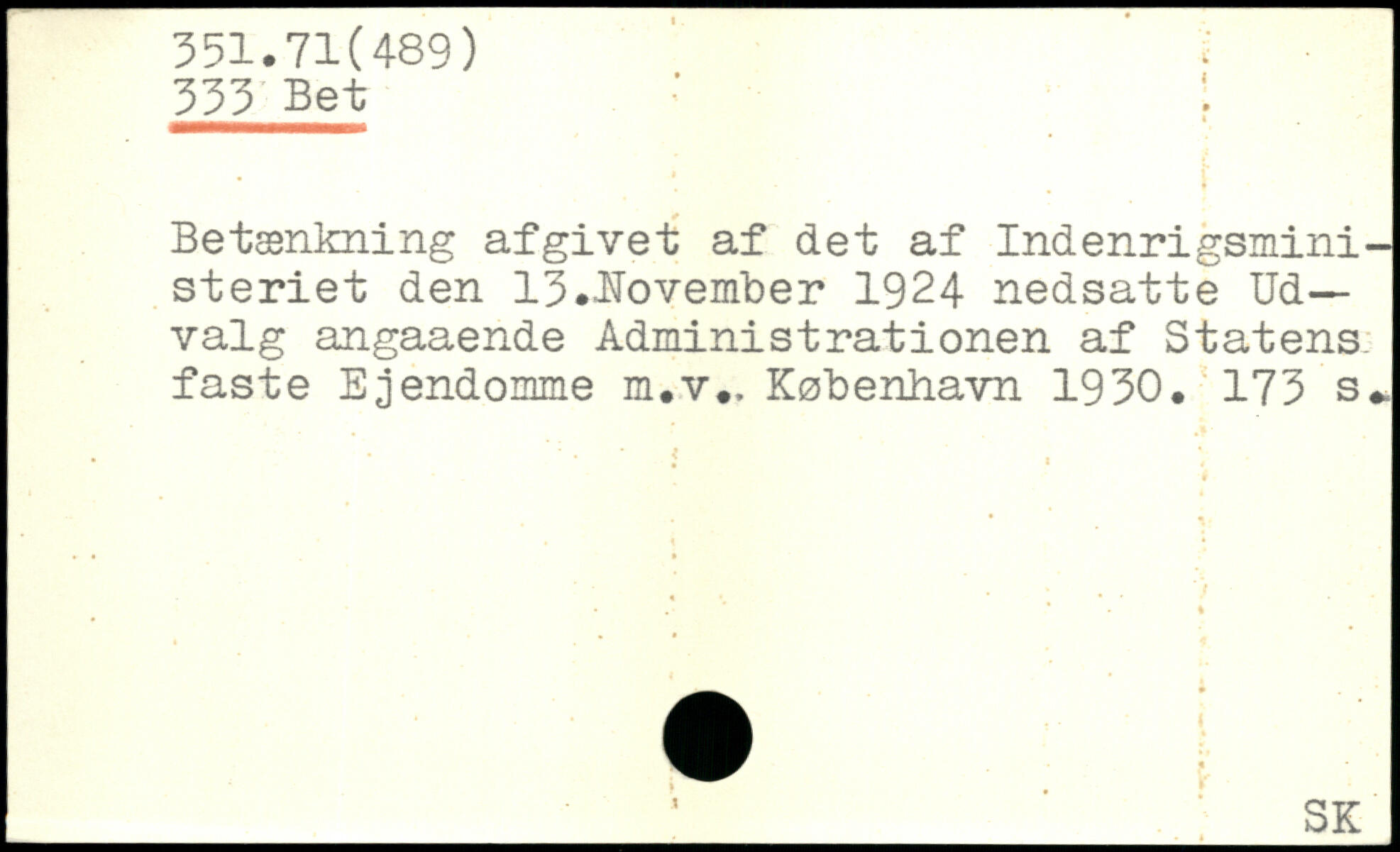 Betænkning afgivet af det af Indenrigsministeriet den 13.-November 1924 nedsatte Udvalg angaaende Administrationen af Statens, faste Ejendomme m.v.