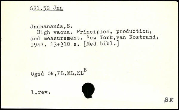 High vacua. Principles, production, and measurement. New York,van Nostrand, 1947.