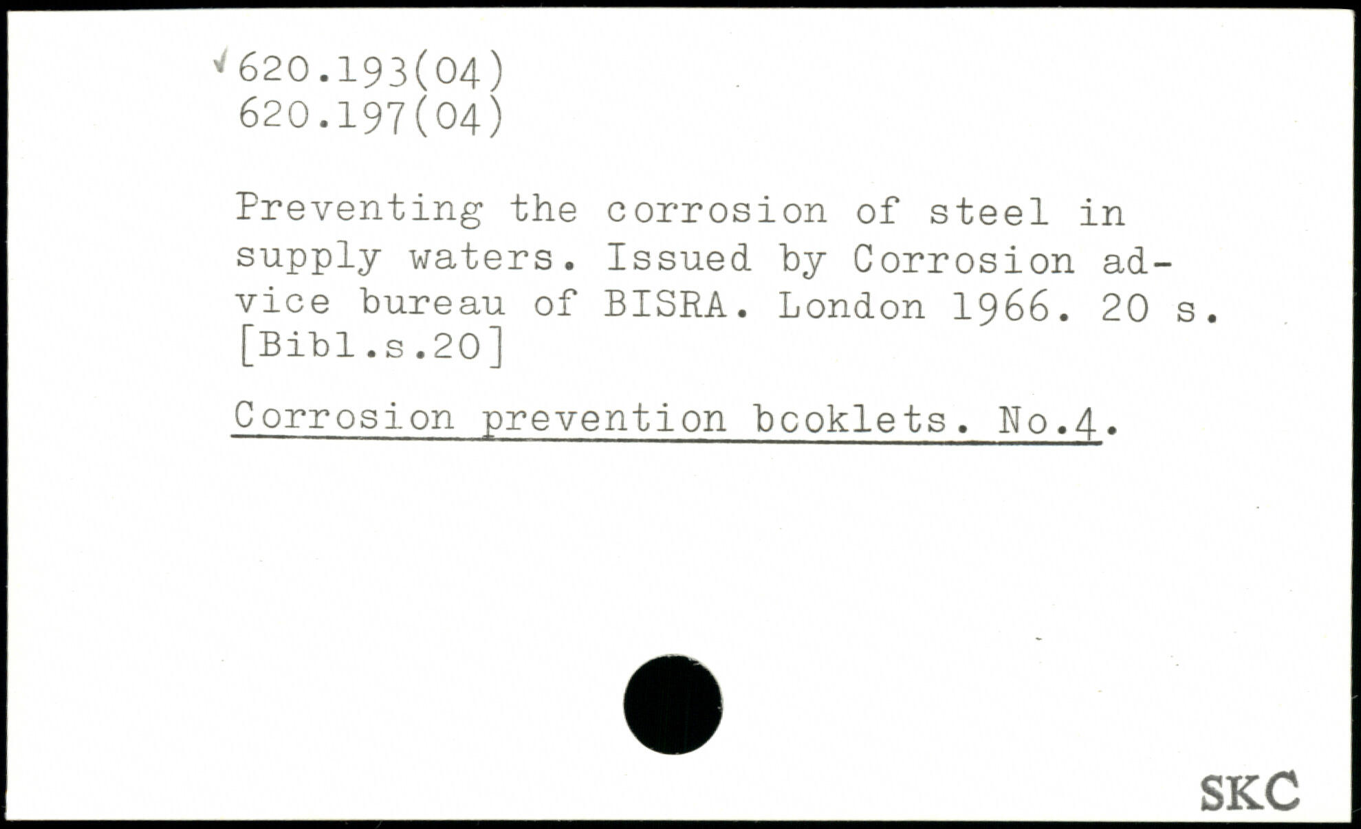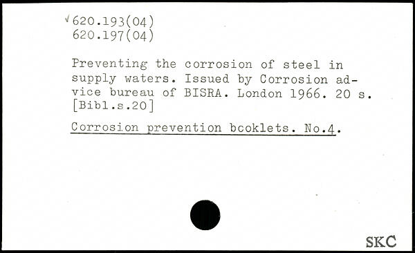 Preventing the corrosion of steel in supply waters. Issued by Corrosion advice bureau of BISRA.