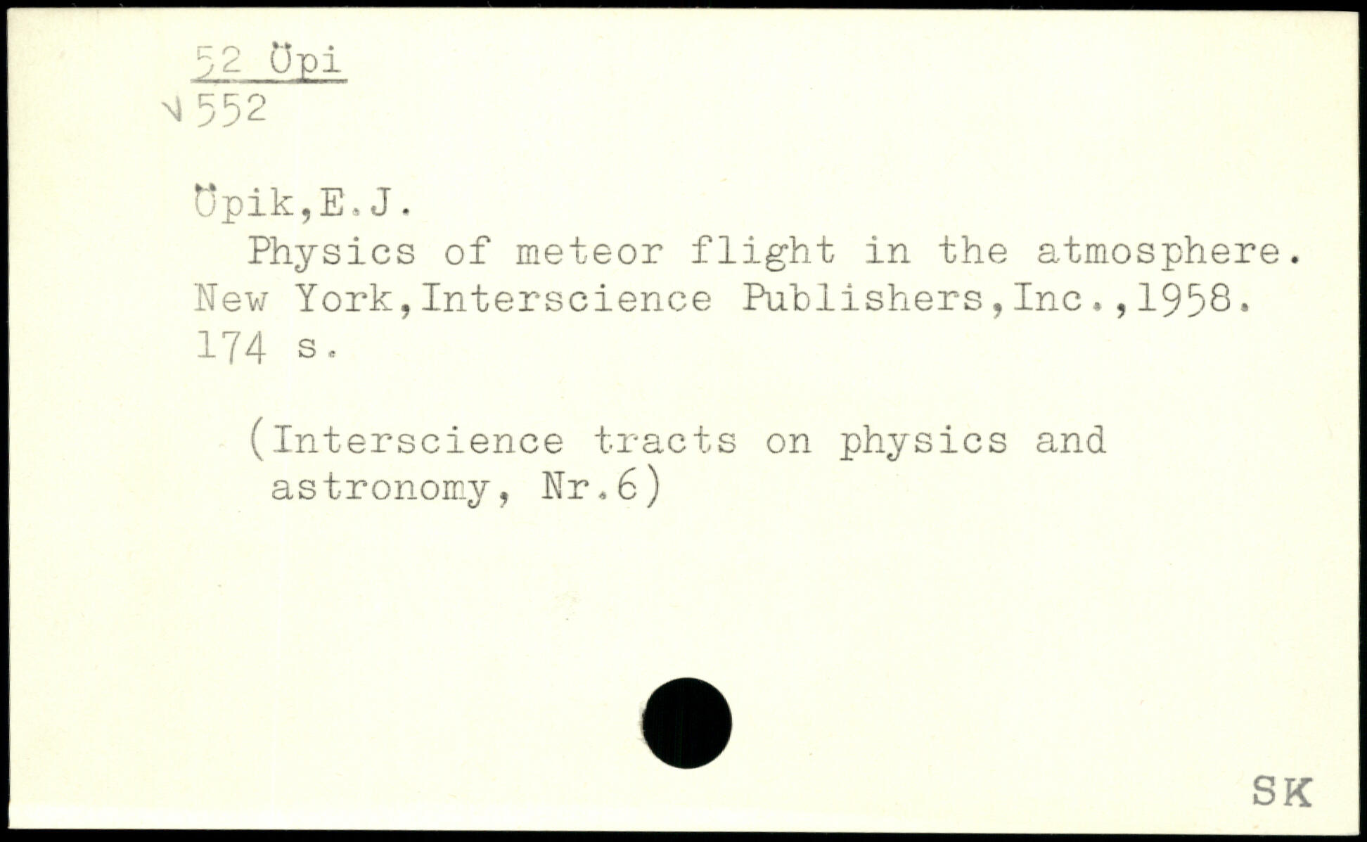 tjpik,E, J. Physics of meteor flight in the atmosphere. New York,Interscience Publishers,Inc1958.