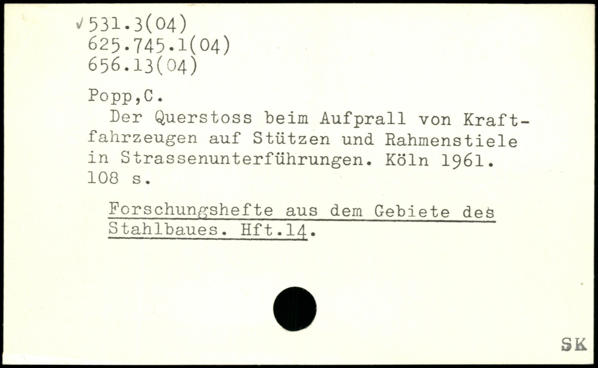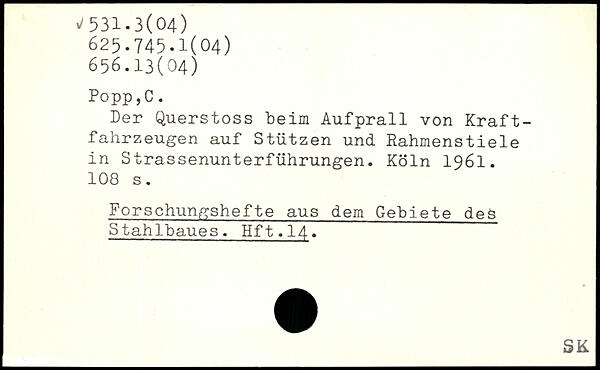 Der Querstoss beim Aufprall von Kraftfahrzeugen auf Stützen und Rahmenstiele in Strassenunterführungen.