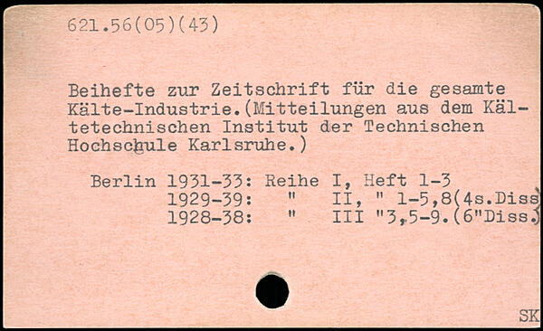 Beihefte zur Zeitschrift für die gesamte Kälte-Industrie.(Mitteilungen aus dem Kältetechnischen Institut der Technischen Hochschule Karlsruhe.)