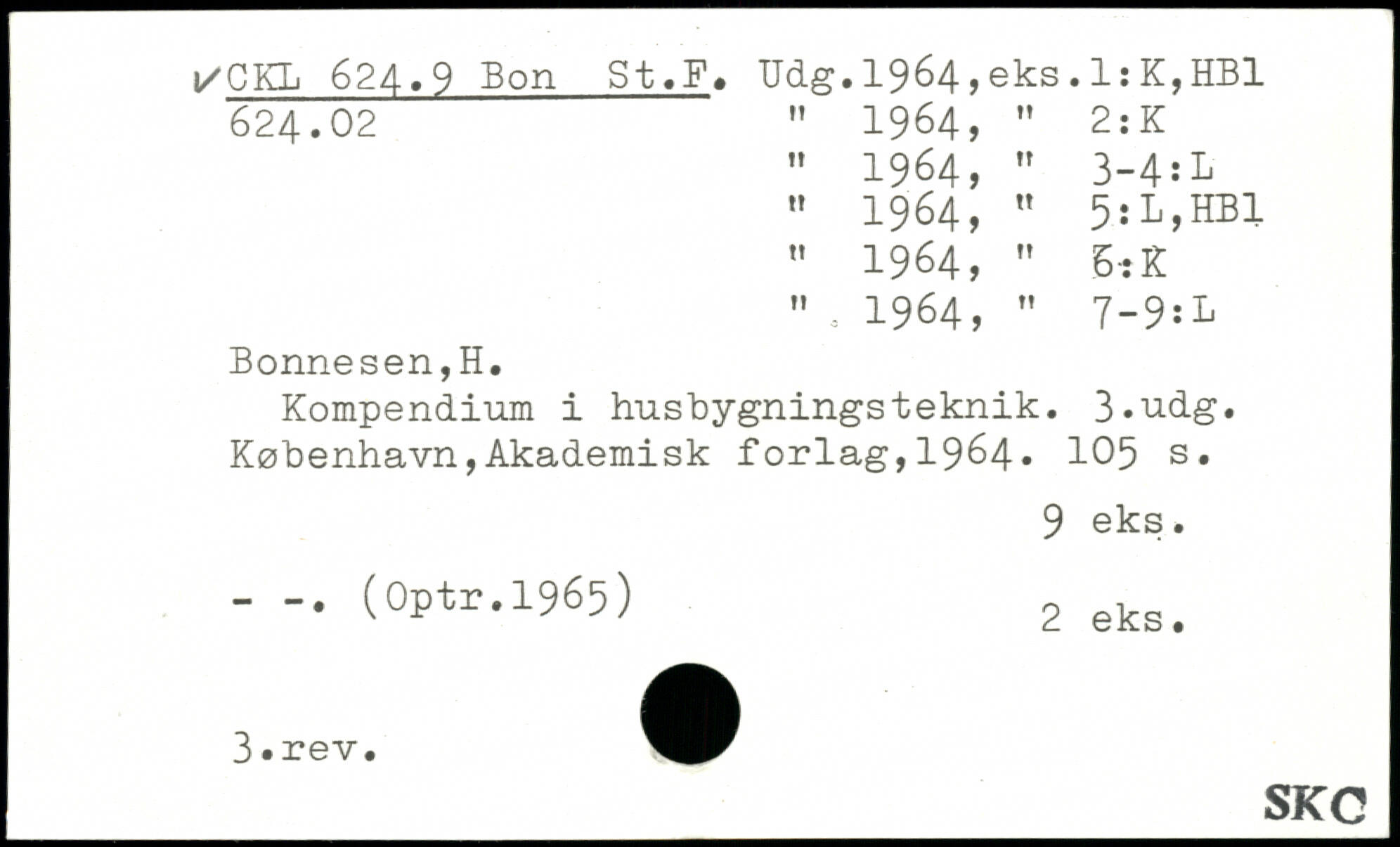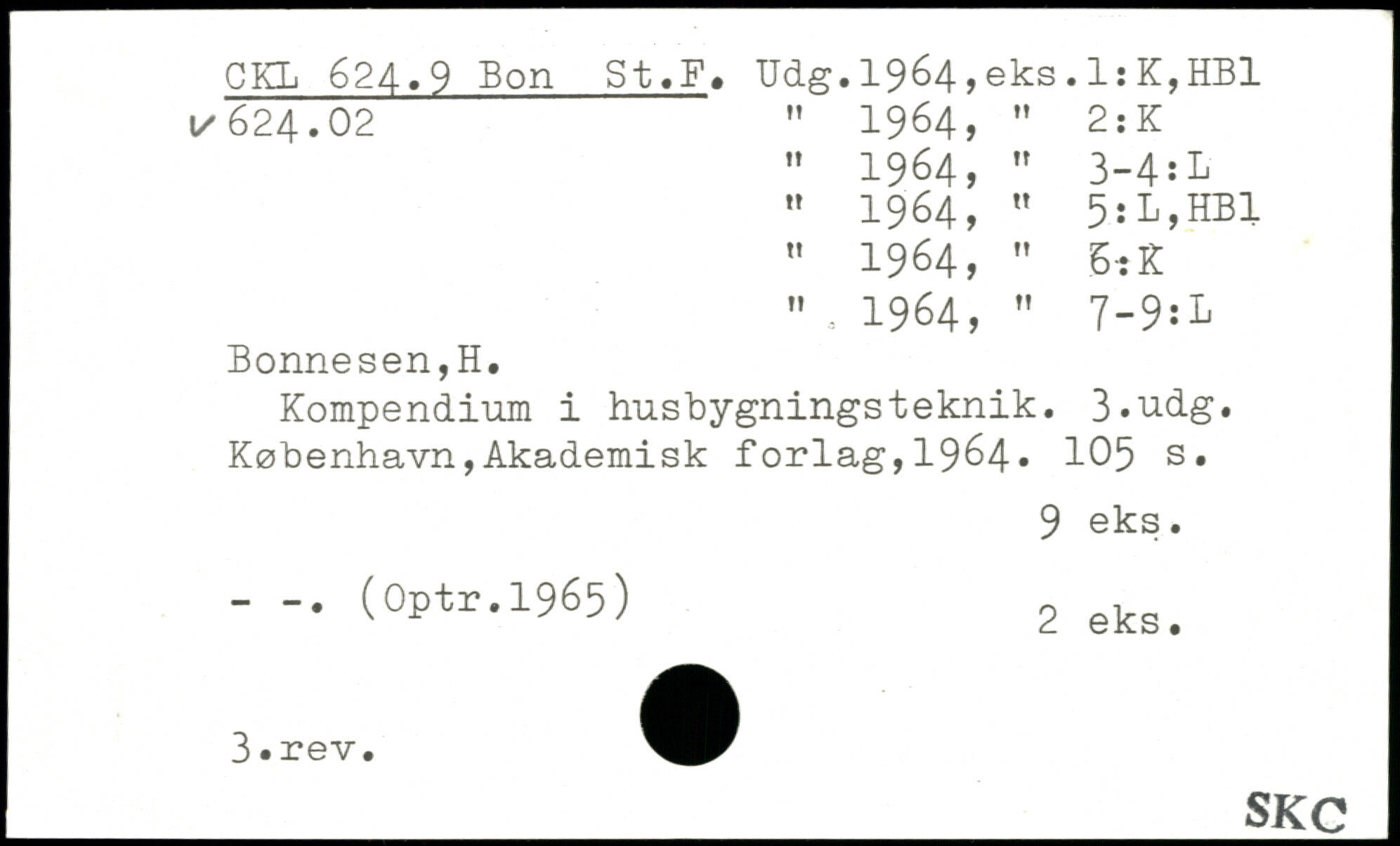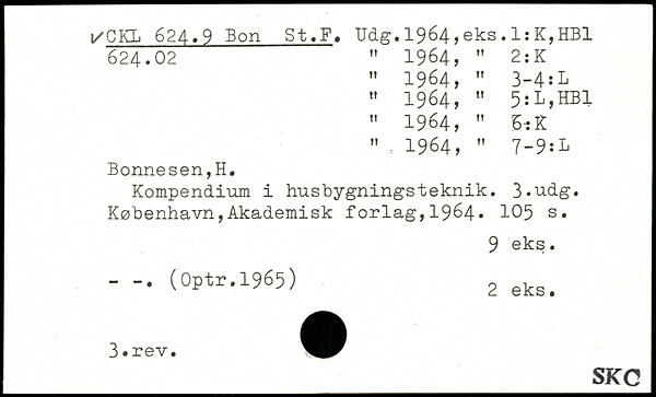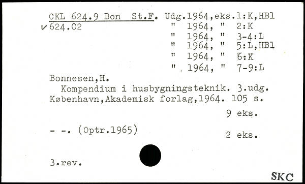 " 1964, " 3-4:L ., 1964, " 5: L, HB1 " 1964, " 6:K ". 1964, " 7-9:L Bonnesen,H. Kompendium i husbygningsteknik.