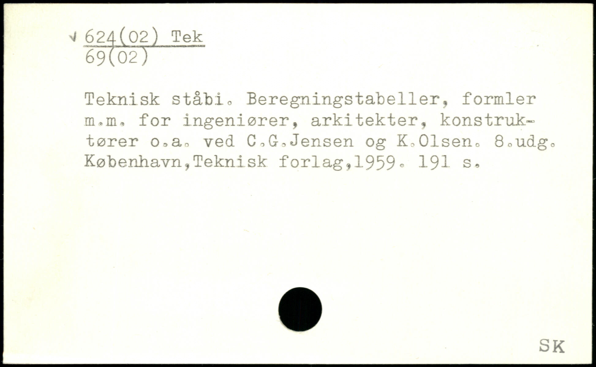 Teknisk ståbio Beregningstabeller, formler m.m, for ingeniører, arkitekter, konstruktører o3a^ ved C,G,Jensen og K,01seno 8nudg.